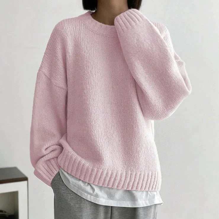 Rina – Rosa einfarbiger Pullover mit Rundhalsausschnitt